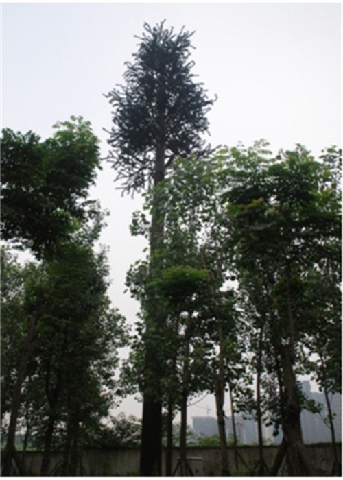 仿生樹美化塔是通信行業(yè)用于偽裝天線最常用樹型之一,高10米~35米。樹冠整體造型成寶塔狀。 仿生樹美化塔采用高強(qiáng)度的鍍鋅管塔為主桿,外敷高分子仿真樹皮,透波性率強(qiáng),阻燃性好,達(dá)到I級(jí)阻燃指標(biāo),保證20年不老化。樹葉采用抗紫外線PU高性能防阻燃環(huán)保材料。耐腐蝕性能好,耐老化耐高溫防阻燃,更加環(huán)保,防紫外線強(qiáng)。整體外形不僅美觀,仿真度高、經(jīng)久耐用,而且與周邊環(huán)境特別協(xié)調(diào),非常適用于對(duì)環(huán)境美化要求較高的基站如:高級(jí)住宅區(qū)、主題公園、風(fēng)景名勝旅游區(qū)、動(dòng)植物保護(hù)區(qū)及游樂(lè)場(chǎng)所。